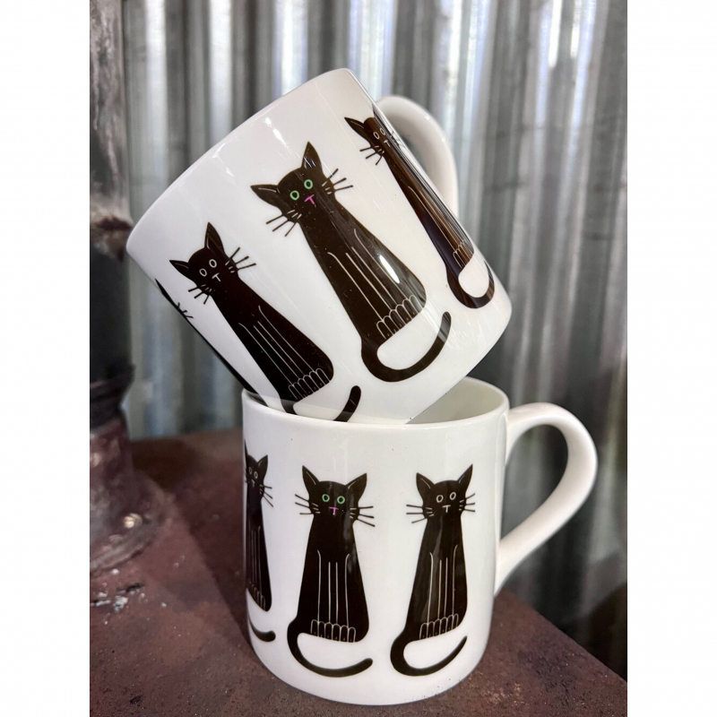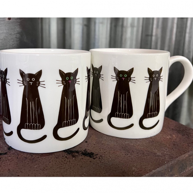 This sleek black cat is available on enamel and china mugs. If you look carefully you can see the green eyes of just one of these feline beauties.