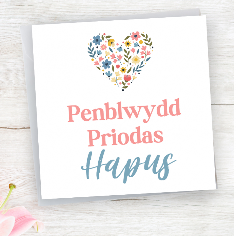Send heartfelt wishes to a couple celebrating their wedding anniversary with this sweet, elegant Welsh wedding anniversary card. The pretty flower heart design and pastel "Penblwydd Priodas Hapus" message are sure to delight the happy couple.