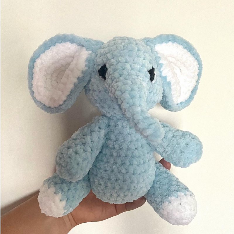 This elephant is looking for a new home! They come in a variety of different colours, with either with sewn-on or plastic eyes. (plastic eyes are suitable for ages 3+) Made to order.