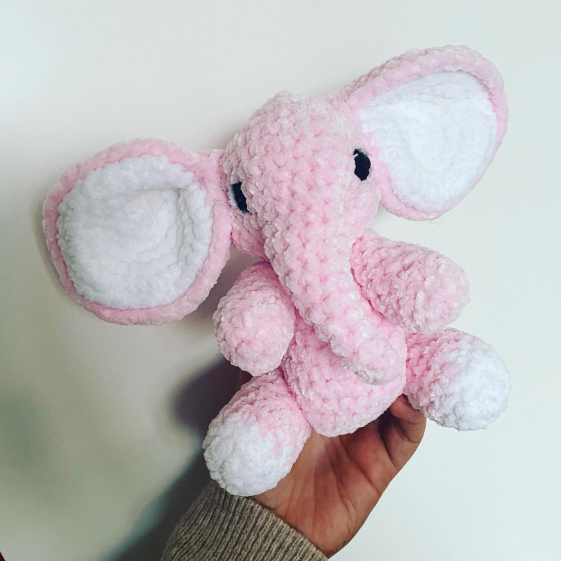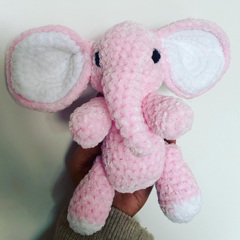 This elephant is looking for a new home! They come in a variety of different colours, with either with sewn-on or plastic eyes. (plastic eyes are suitable for ages 3+) Made to order.