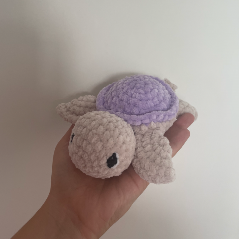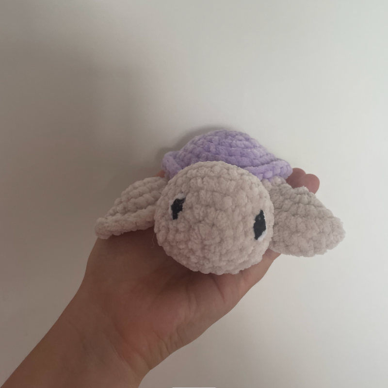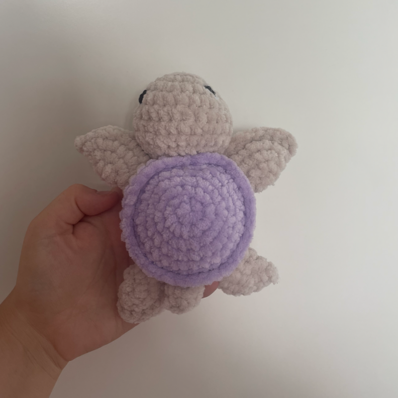 These turtles are perfect for small (or big) hands! The body itself comes in a creamy beige colour, but the shell can be made in a variety of colours.  Made to order.