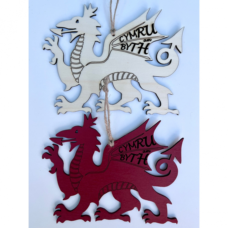 This wooden* dragon is perfect to add a Welsh touch to any home! It comes with two colour options: plain wood or sprayed red wood.