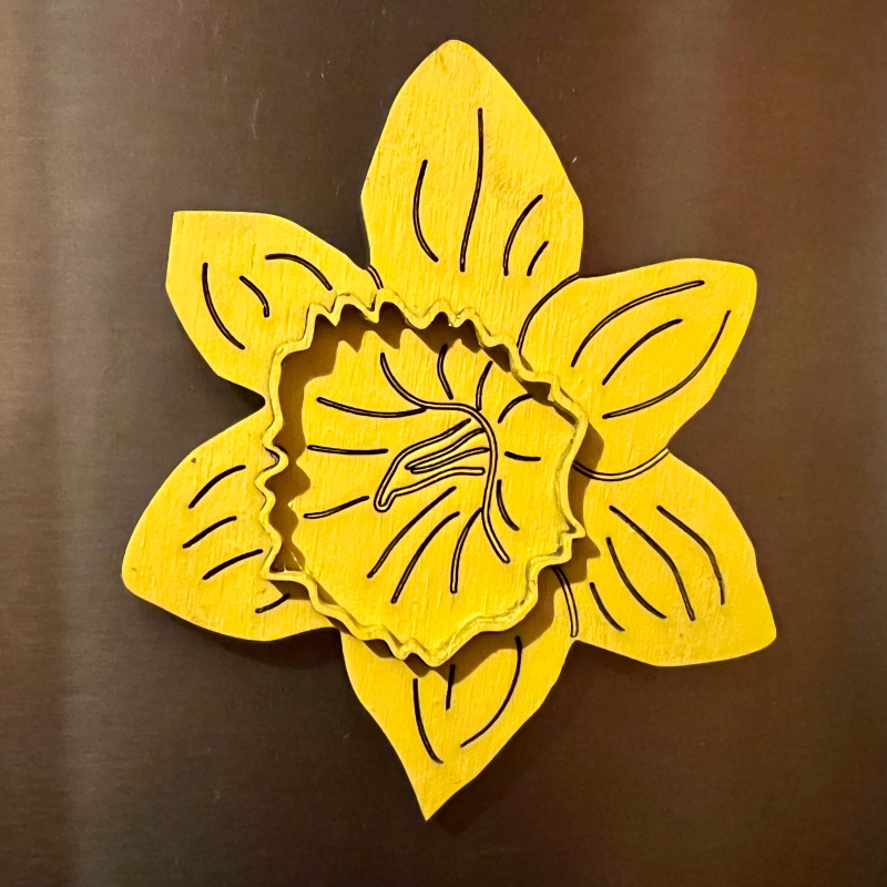 - Magnetised strip means this daffodil will stick to most metal surfaces