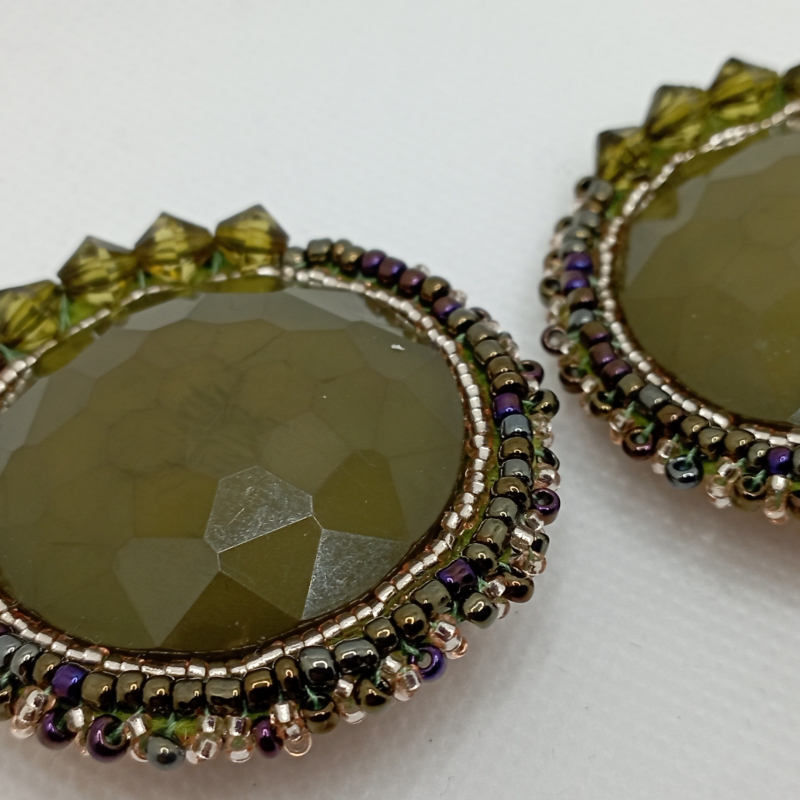 Used materials: beads (including crystal beads), vintage buttons (from 70s/80s), felt, faux leather, golden hardware and clip ons, which makes the earrings available for everyone!