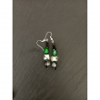 Unique clear glass beads with a silver and black interior are matched with small black cubes and crystals on these unusual earrings. The bright green crackle bead adds a splash of colour.