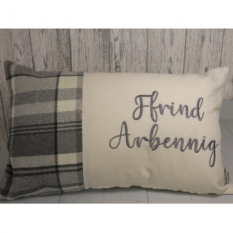 Ffrind Arbennig in a choice if 4 wool Wool Touch fabrics on 20 x 12" Rectangle Panel Cushion