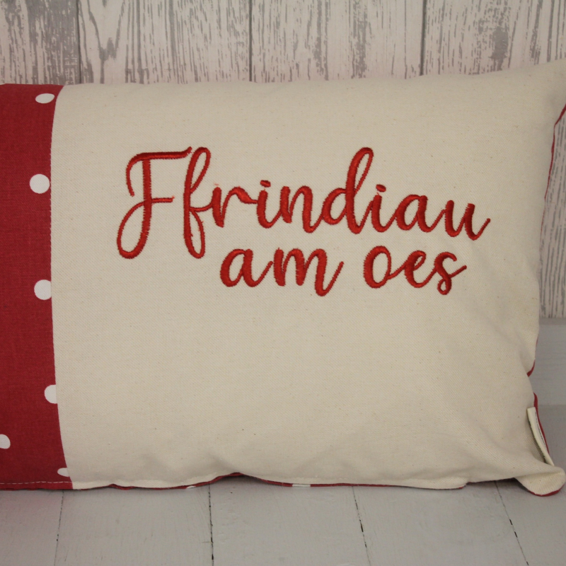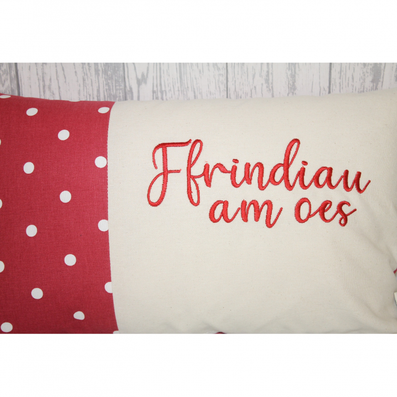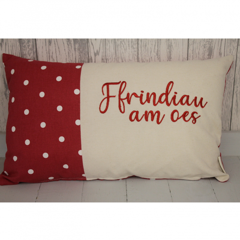Ffrindiau Am Oes 20 x 12" Rectangle Panel Cushion- Red Dotty