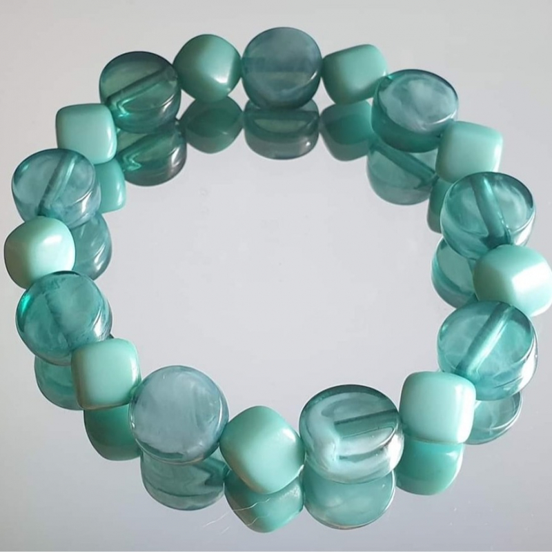 Bracelet made with green upcycled acrylic beads.