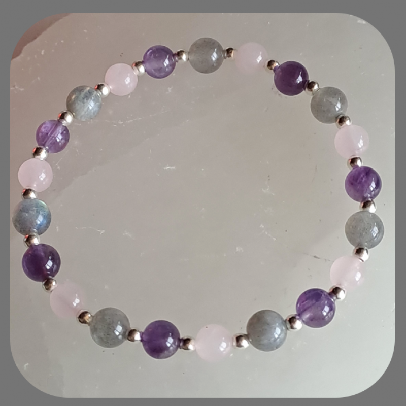 Labradorite, Amethyst, Rose Quartz and sterling silver bracelet'