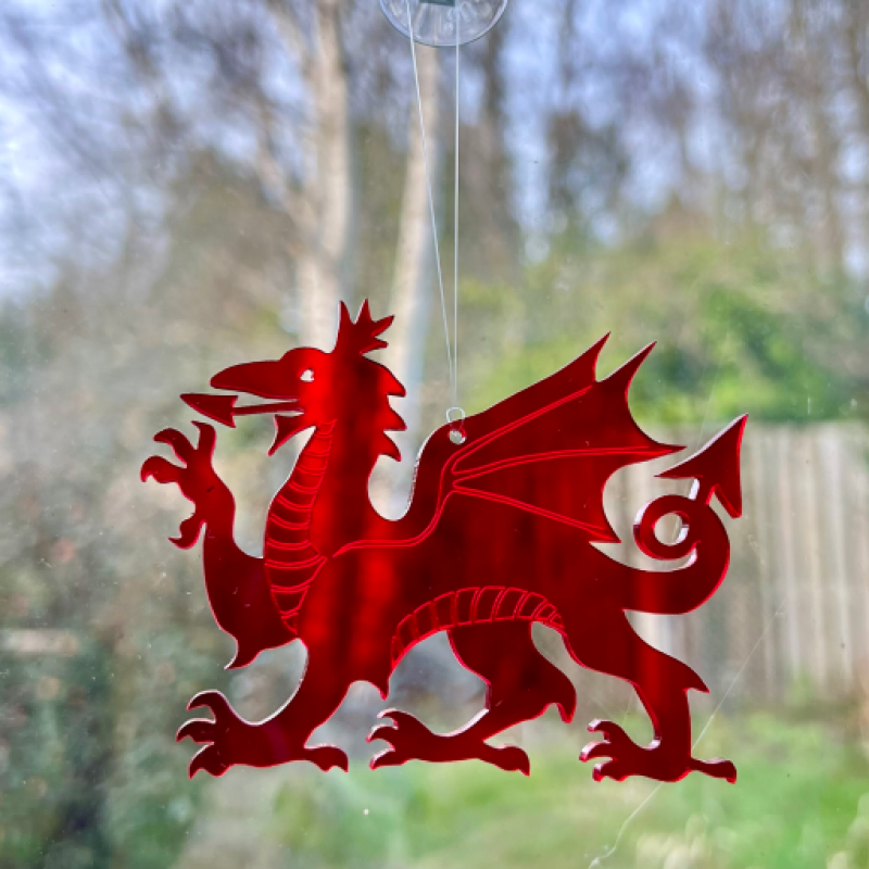 This cheerfully bright acrylic dragon, ideal for adding a Welsh touch to any room / window, is available in four colours* and two sizes.