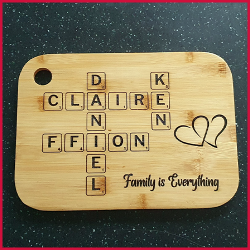 Please note, as each of our chopping boards are engraved from bamboo so there may be slight imperfections.