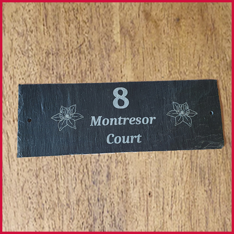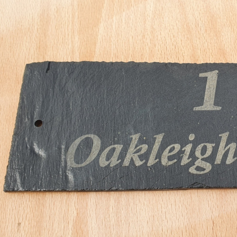 These address signs are made from slate, and finished with spray varnish to protect them so they will last.