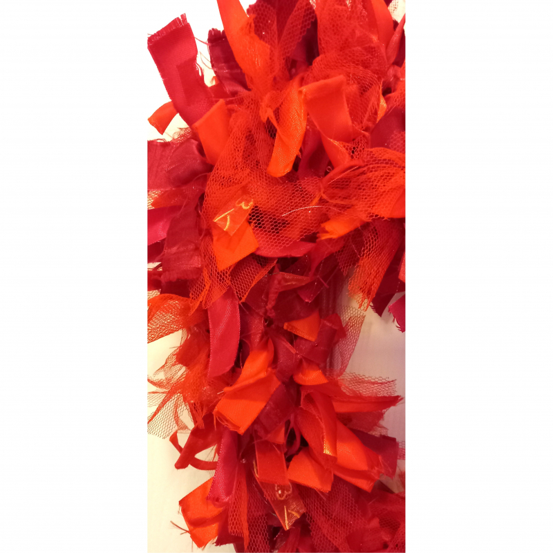 Wanting nothing to go to waste or landfill, our wreaths are made of a variety of beautiful fabric offcuts, ribbons and sometimes lace all individually hand tied to wire metal 12” frames alongside luxurious purpose cut pieces. Also comes with a length of ribbon for use as a tie if required.