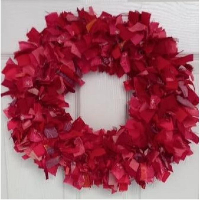 Bright shades of orange and red make this handmade round rag wreath the perfect house warming gift for one you love. Or perhaps keep it for yourself to add something new to your home’s interior.