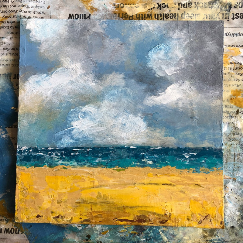Original small acrylic painting of Welsh landscape. Mounted on 300gsm watercolour blank card. Fits 8x8 inch frame. Image size approximately 125x125 mm