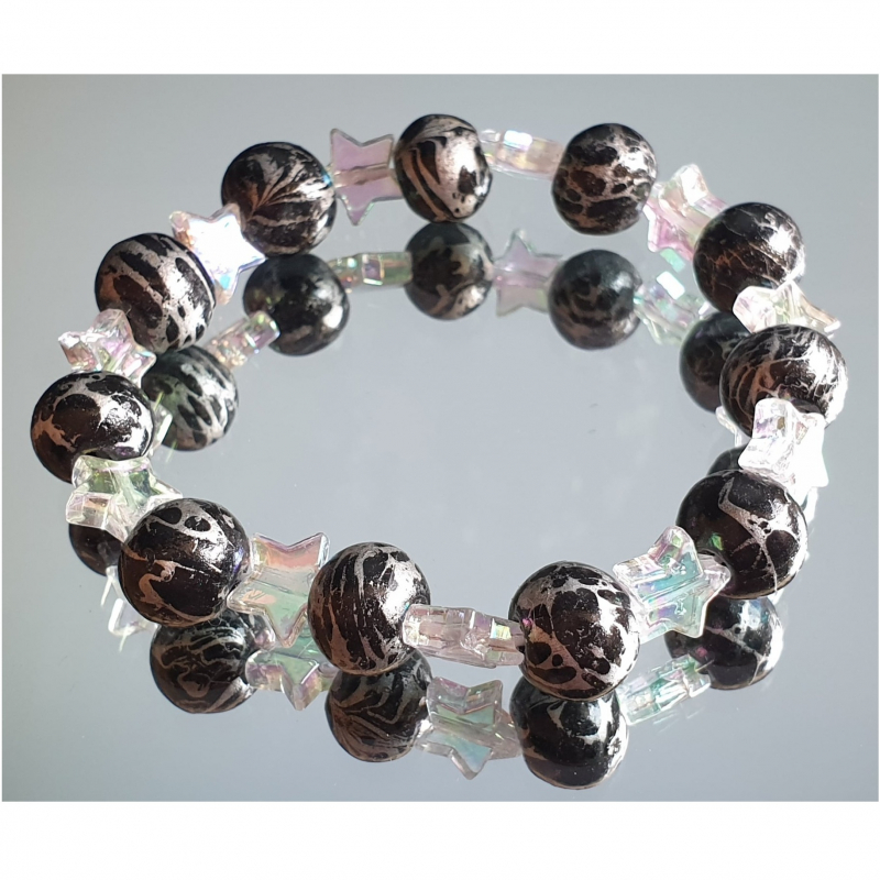 Bracelet made with acrylic star beads and upcycled wooden beads