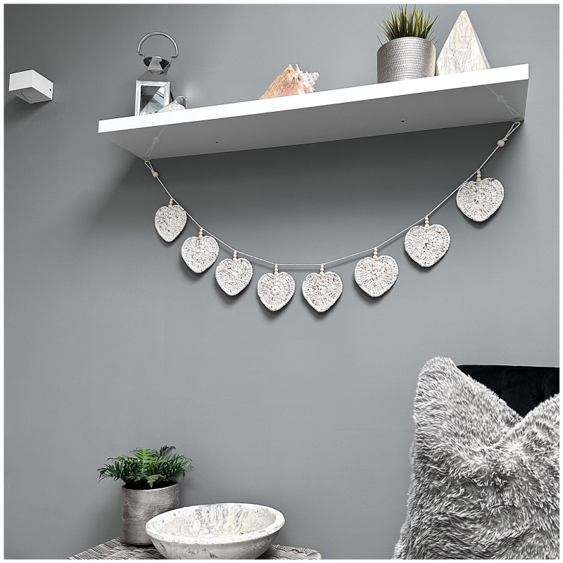 The garland consists of 8 heart elements and measures approximately 1.25 metres in length.