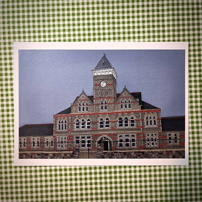 This print shows the old building of St David's Hospital in Cardiff. Perfect for any lover of old Cardiff architecture or anyone looking to commemorate a visit to Cardiff!