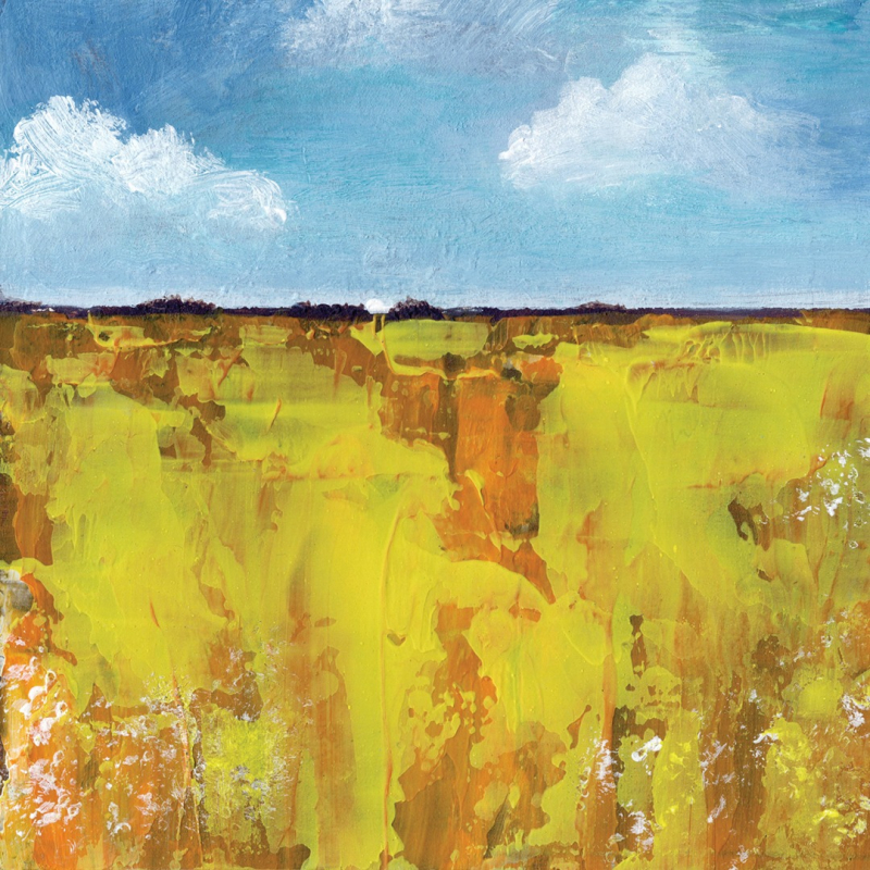 Mounted original small acrylic painting of Welsh landscape. Fits 8x8 inch frame. Image size approximately 125x125 mm.