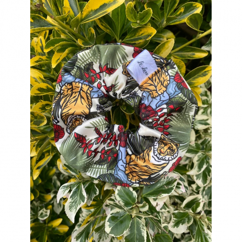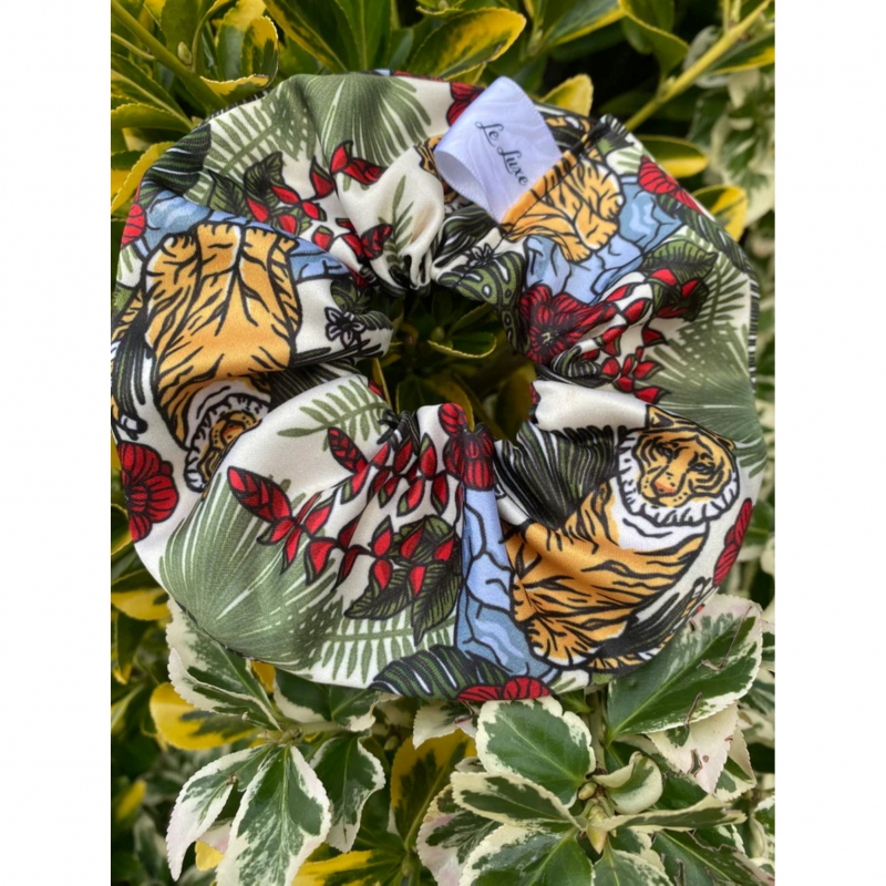 A beautiful jungle themed scrunchie made from only the best quality duchess silk fabric