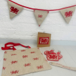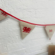 A super cute 5 Flag welsh dragon bunting . The bunting is approx 1M with extra on each end for hanging. The cute welsh dragon is embroidered on alternate flags dragon fabric in the other . Bunting flags are approx 7” and come on red bias binding.