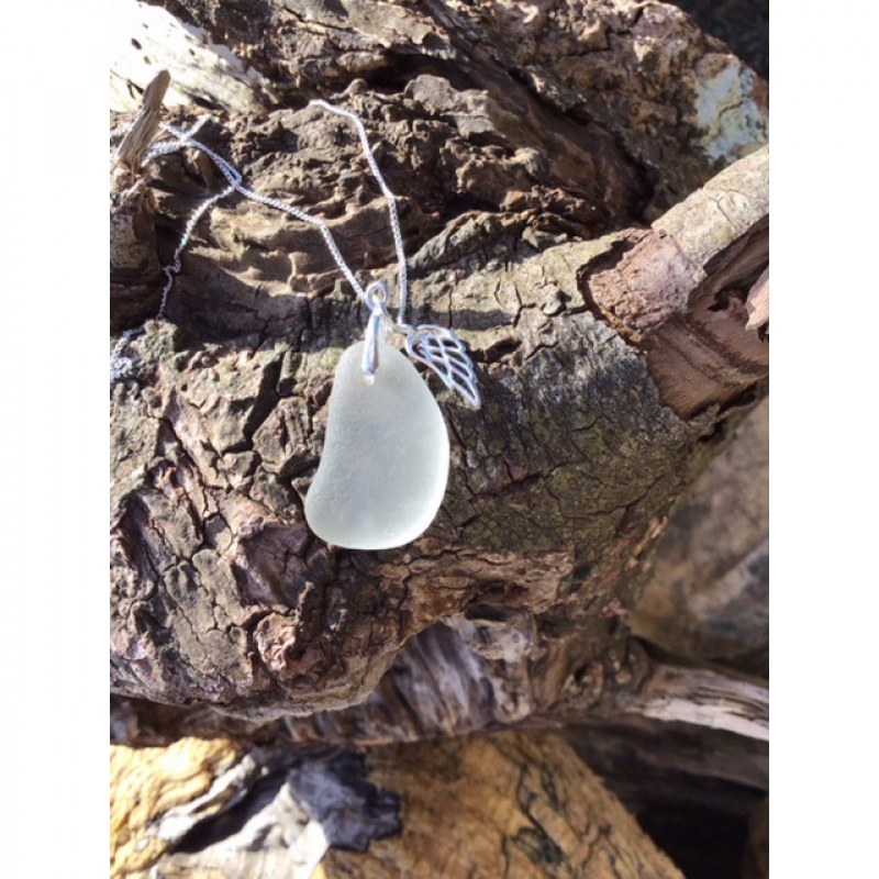 White seaglass and Angel wing charm