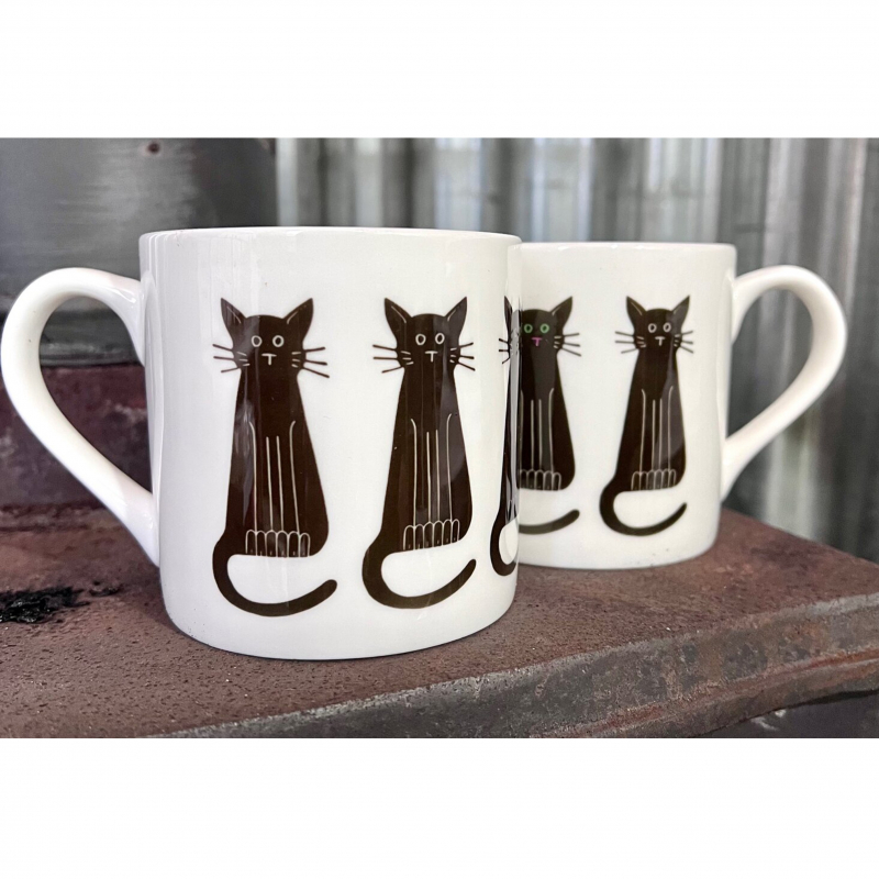 This sleek black cat is available on enamel and china mugs. If you look carefully you can see the green eyes of just one of these feline beauties.