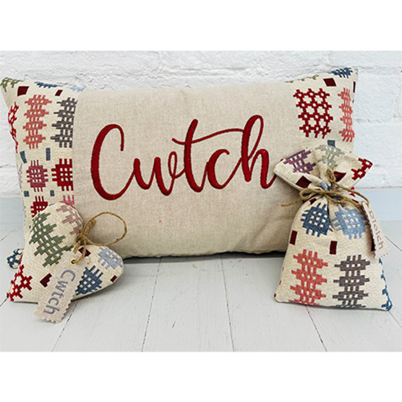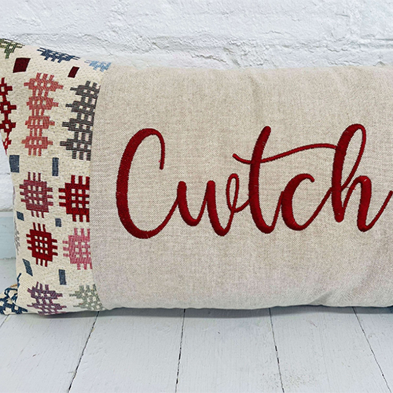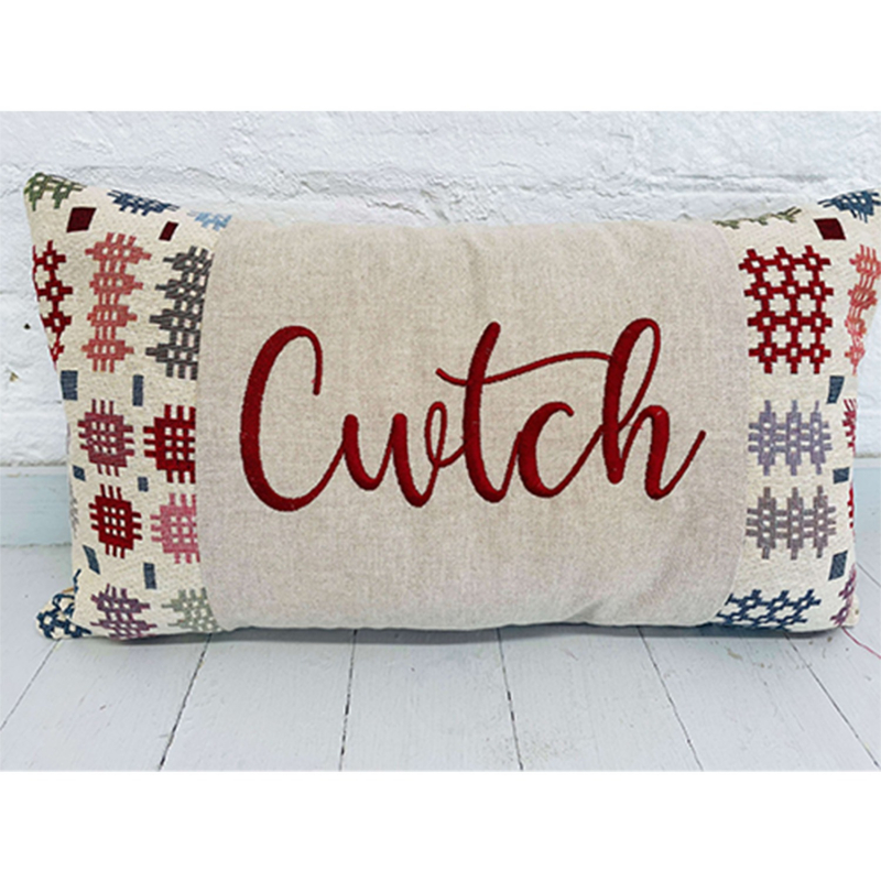 - Design. It features an embroidered cursive CWTCH that means (to cuddle) in the Welsh language. The minimal design is aesthetically pleasing and the expression is the best way to express your Welsh culture in your home.