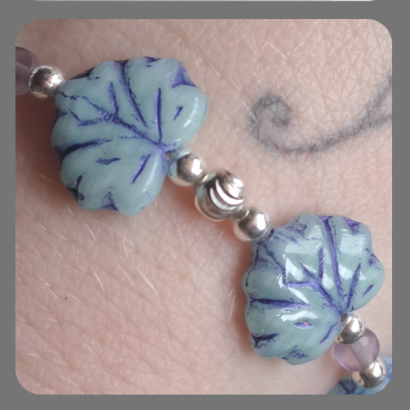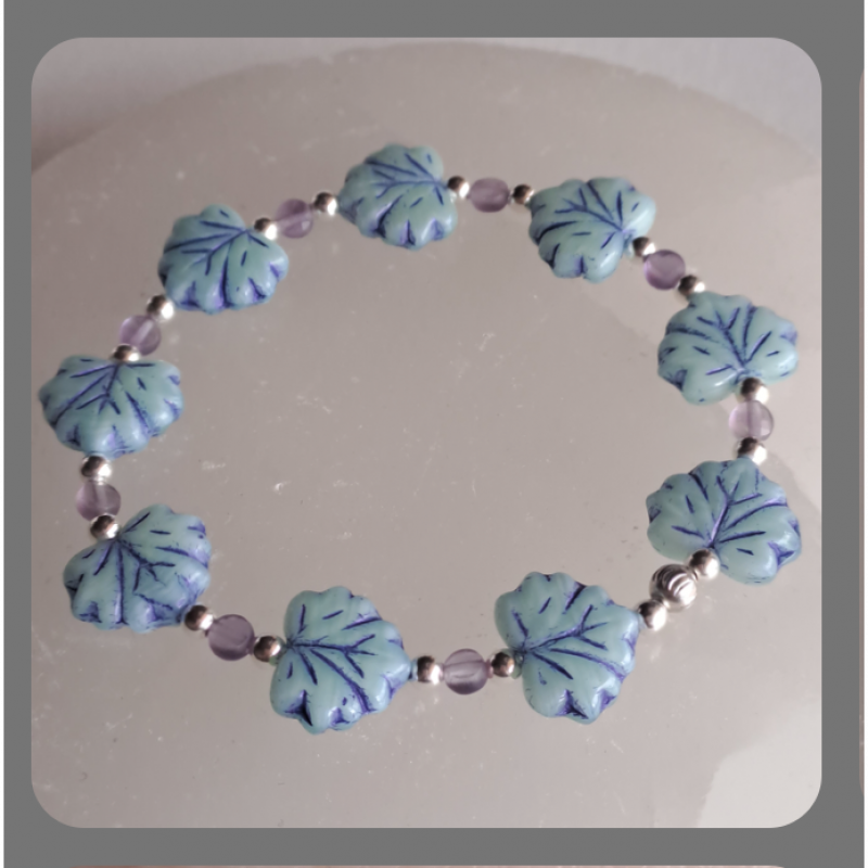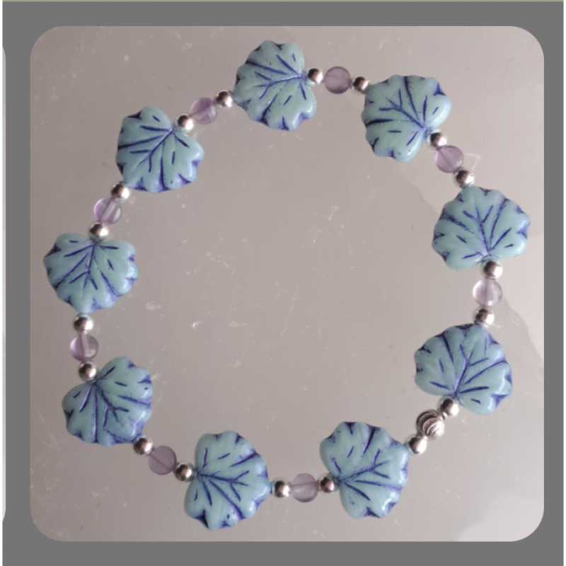 Pretty bracelet made with pastel coloured Czech glass leaves, Amethyst and sterling silver.