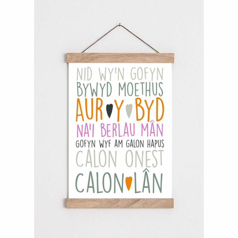 The design is the lyrics to a very popular welsh song Calon Lan meaning pure heart.