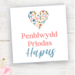 Send heartfelt wishes to a couple celebrating their wedding anniversary with this sweet, elegant Welsh wedding anniversary card. The pretty flower heart design and pastel "Penblwydd Priodas Hapus" message are sure to delight the happy couple.