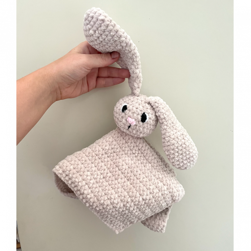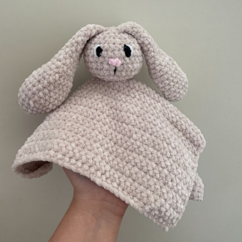 This bunny blanket is suitable for all ages! The sewn-on eyes and soft wool is enough to make any baby stop crying. Available in a variety of colours. Made to order.