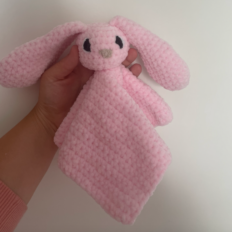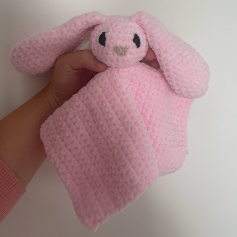 This bunny blanket is suitable for all ages! The sewn-on eyes and soft wool is enough to make any baby stop crying. Available in a variety of colours. Made to order.