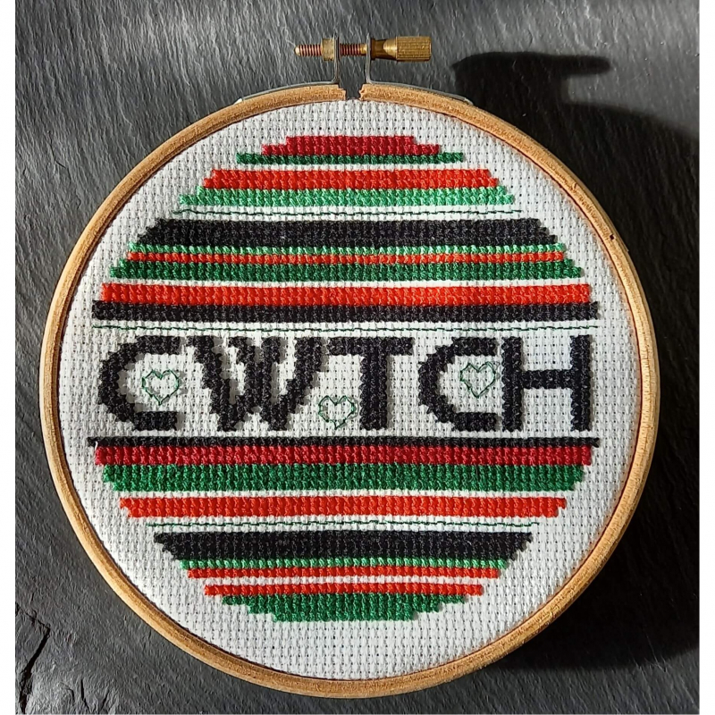 A pattern designed for beginners using full cross stitches and back stitch only and using the colour palette of Wales - red, green, white and black.