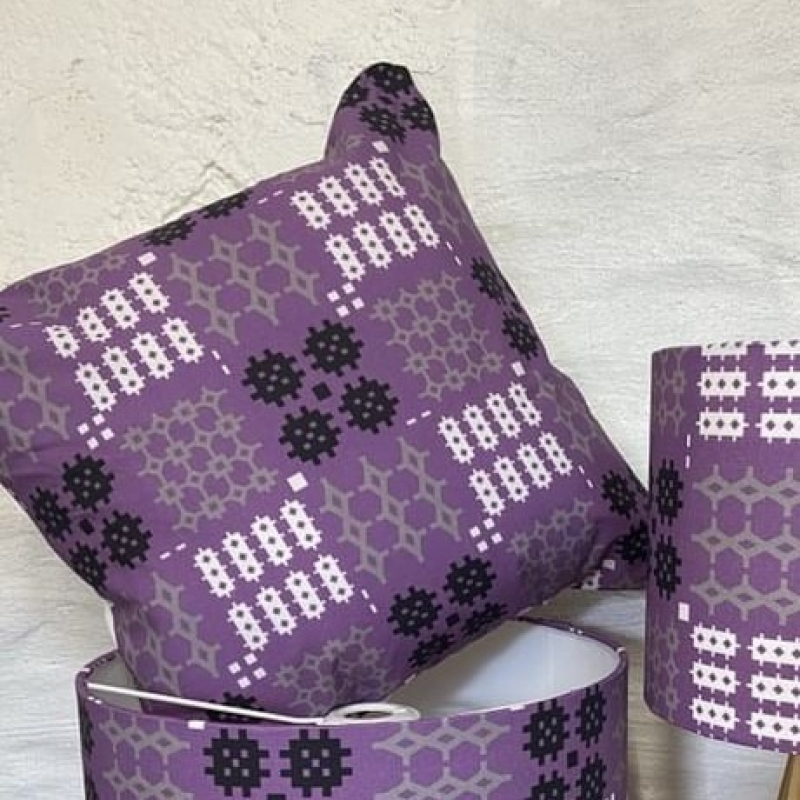 Cushion in a Welsh tapestry print – with an envelope back with a plain co-ordinating material.