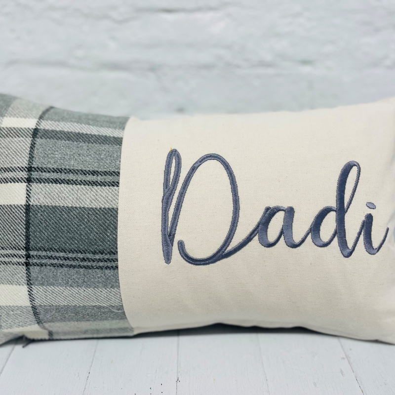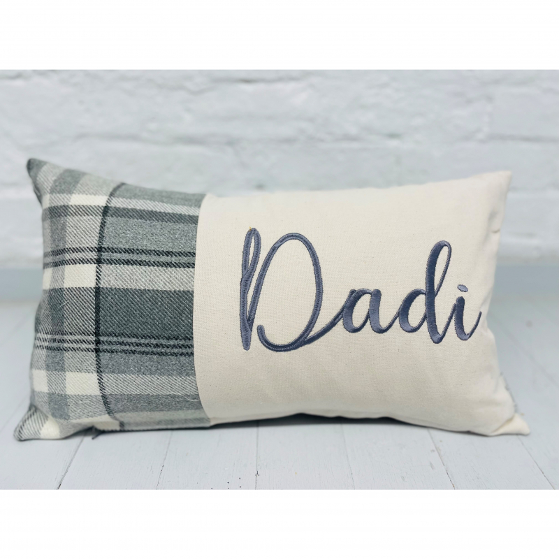 Can be personalised with any name , embroidered on a panel with the wool touch fabric on the side and in the back .