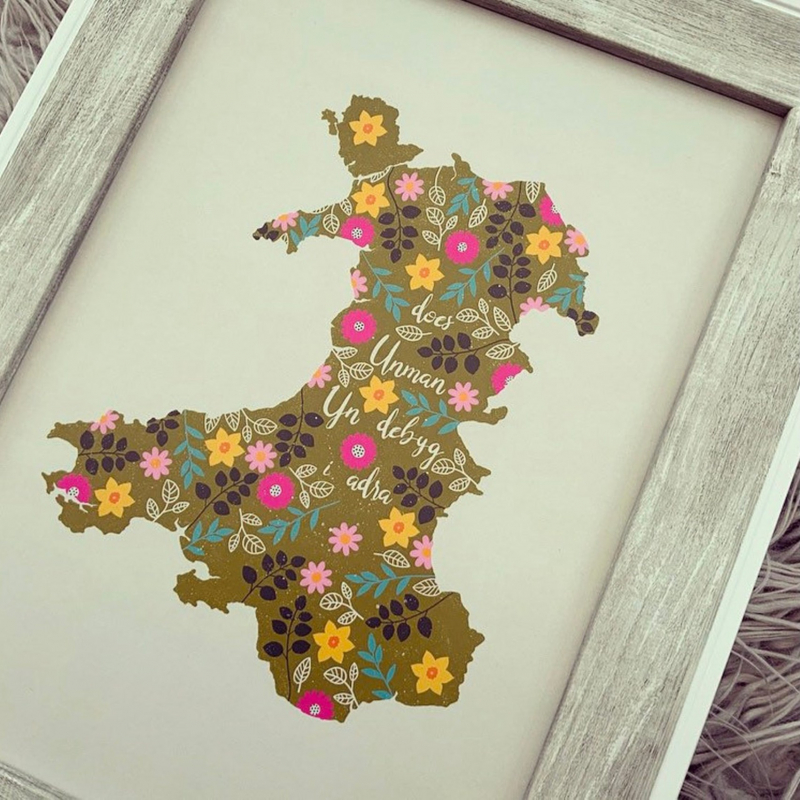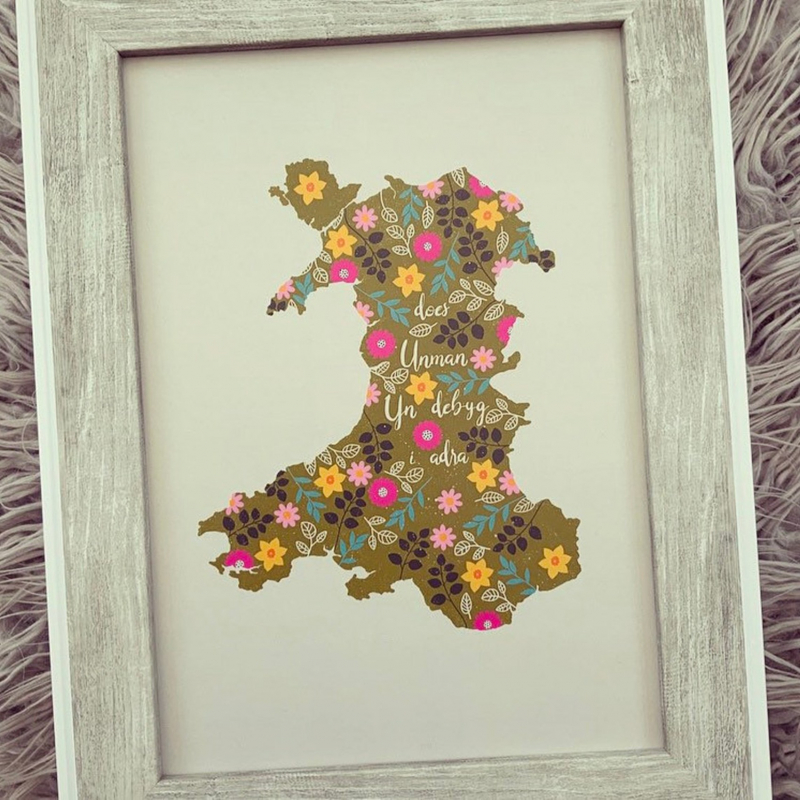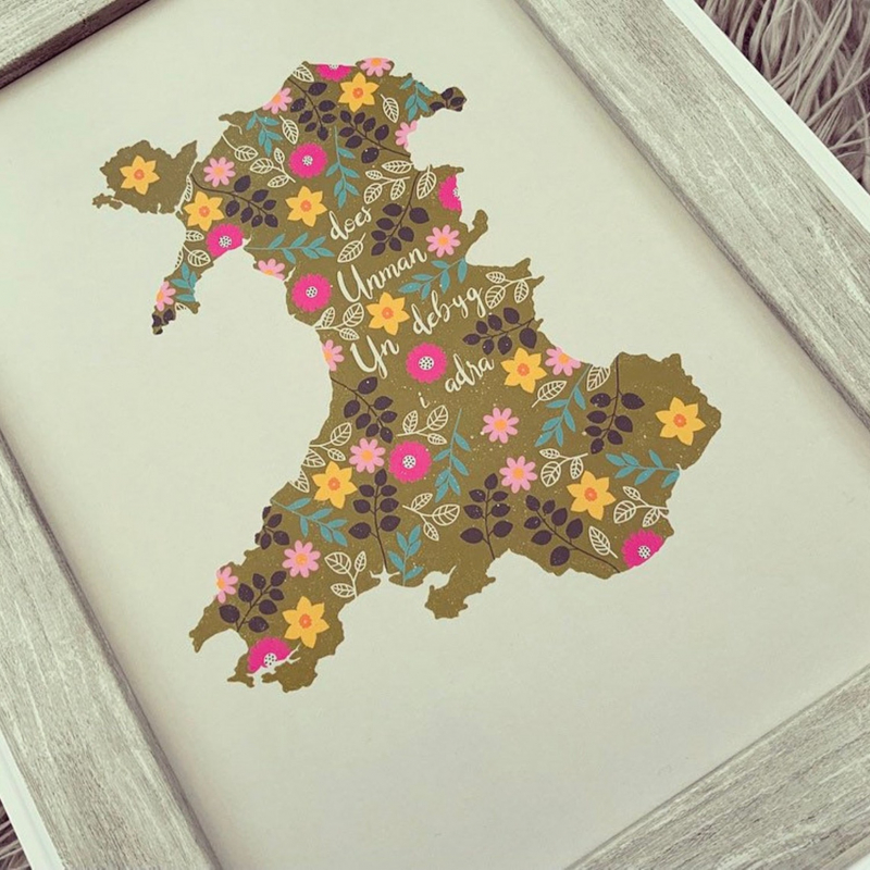 Bright , fun and colourful floral design illustrated into the shape of wales .
