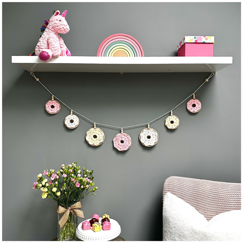 The garland consists of 7 doughnut elements (3 large, 3 medium) and measures approximately 1.25 metres in length.
