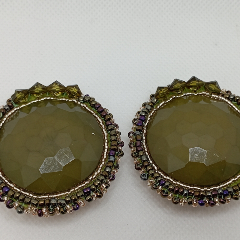 Used materials: beads (including crystal beads), vintage buttons (from 70s/80s), felt, faux leather, golden hardware and clip ons, which makes the earrings available for everyone!