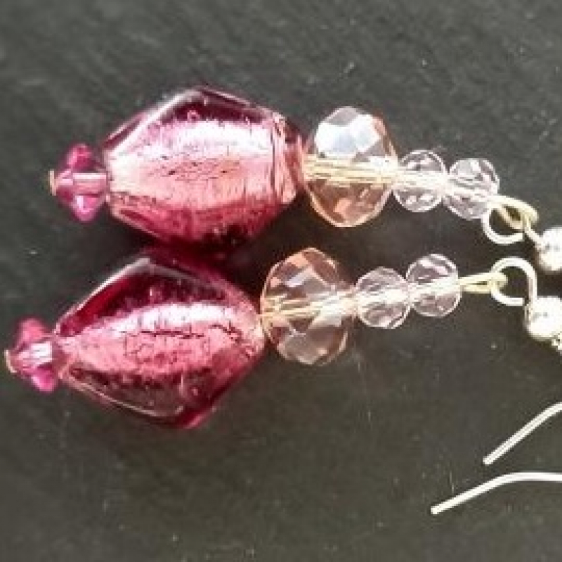 Beautiful rose pink beads are showcased by pale pink crystals. These earrings are subtle but will add a sparkle to any outfit. Perfect for a Valentine gift or that Summer Wedding.