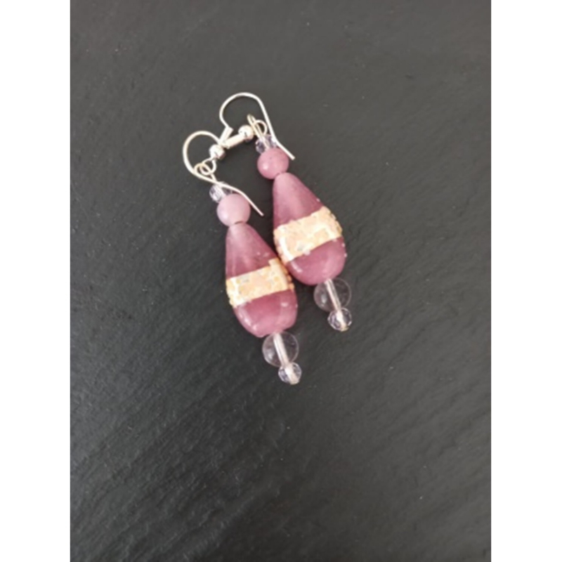 Pale pink earrings featuring stunning pink glass teardrop beads with silver and white stripe decoration. Small pink beads and palest pink crystals add to the beauty of these subtle earrings.