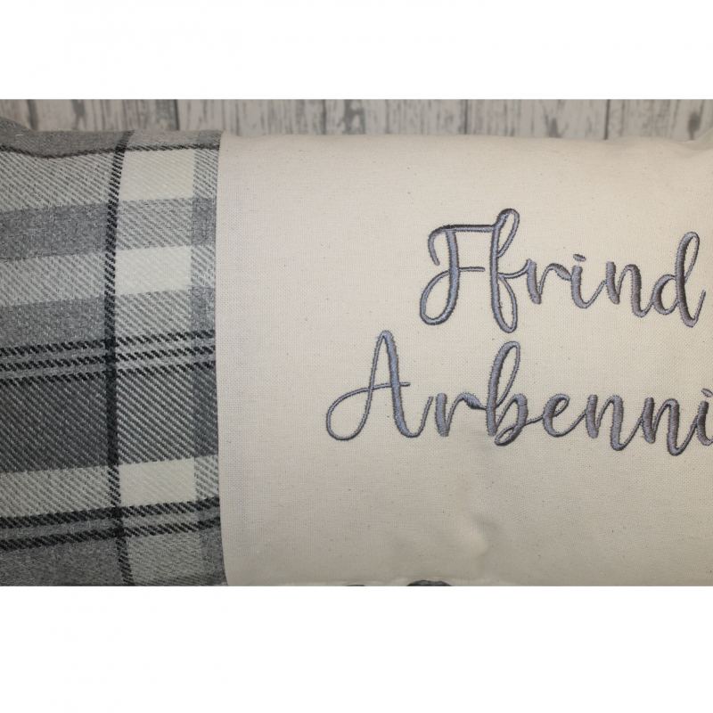 Ffrind Arbennig in a choice if 4 wool Wool Touch fabrics on 20 x 12" Rectangle Panel Cushion