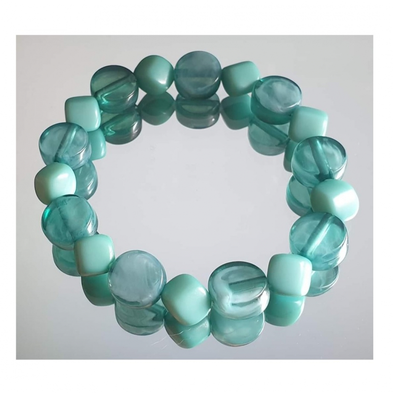 Bracelet made with green upcycled acrylic beads.