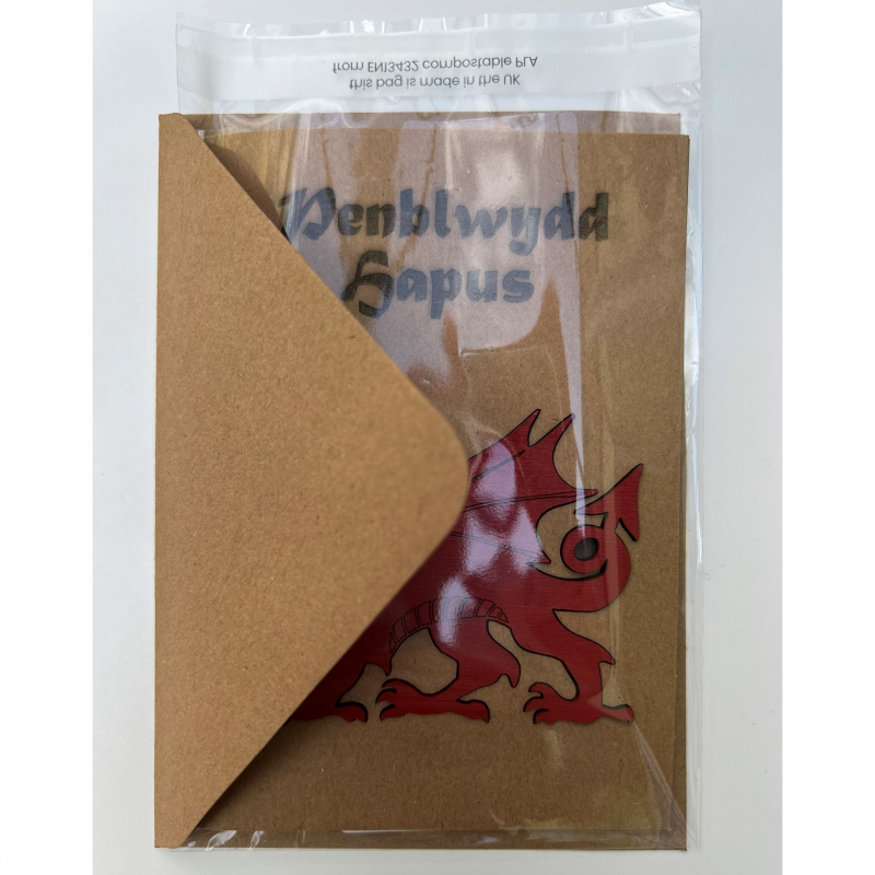 Stuck for an idea? Why not send a friend/ family member our card/ present in one! The gift is one of our wooden* dragon fridge magnets (Draig Coch | Welsh Dragon or Cennin Pedr | Daffodil - more designs on the way!) which is simply pushed out of the card. which is We can even add a name and/ or age!