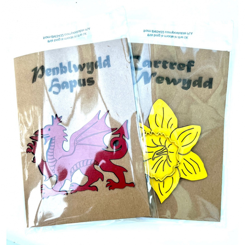 Stuck for an idea? Why not send a friend/ family member our card/ present in one! The gift is one of our wooden* dragon fridge magnets (Draig Coch | Welsh Dragon or Cennin Pedr | Daffodil - more designs on the way!) which is simply pushed out of the card. which is We can even add a name and/ or age!