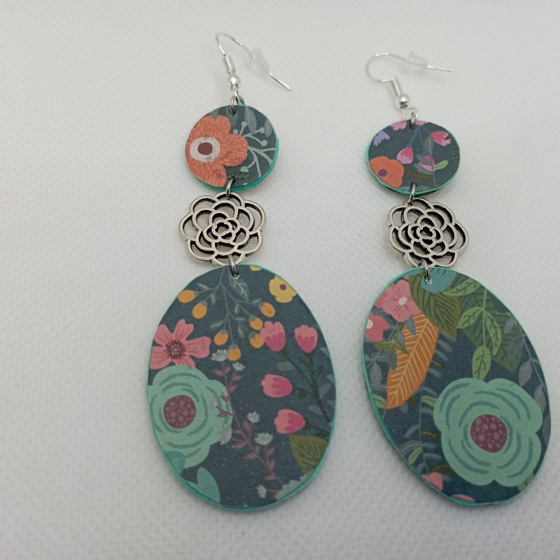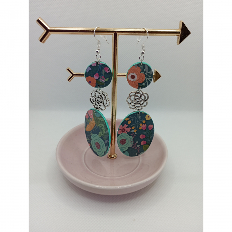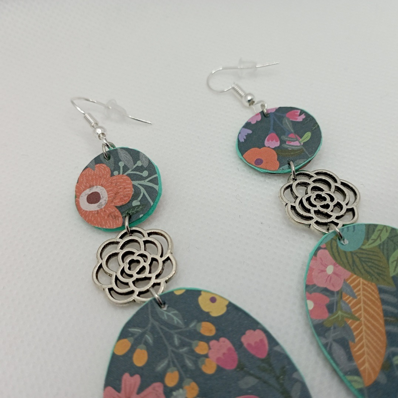 Earrings made with EVA rubber and origami paper, these unique earrings are resistant and very light to wear despite their lenght (9cm), silver hardware and unique flower charms!