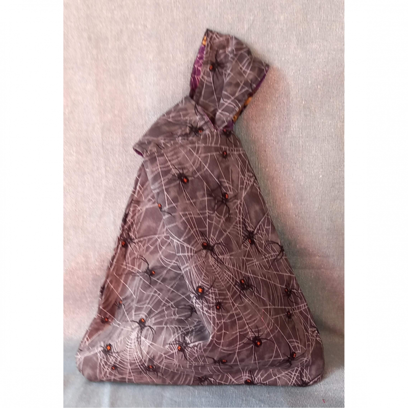 Featuring a gorgeous purple fabric with skulls, spider webs and cats this bag will call to all those who love something a little different, a little spooky. The other side has a creepy but cute spider pattern which compliments the purple side perfectly.