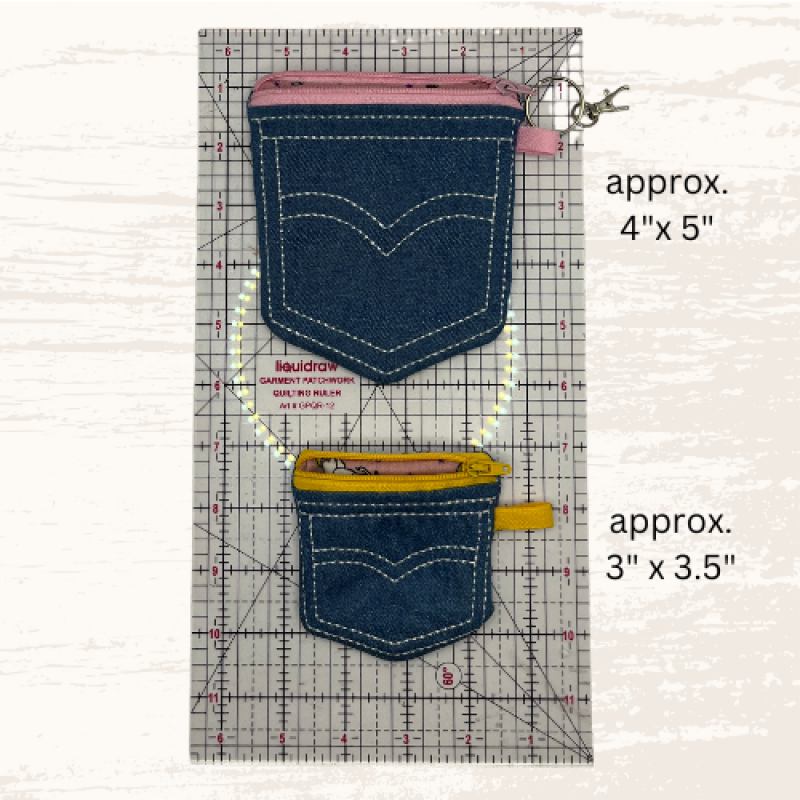 This lovely ‘Jeans Pocket’ zip bag is ideal to carry your change and credit cards safe. It has a lobster claw clasp to attach to your bag or keys.
