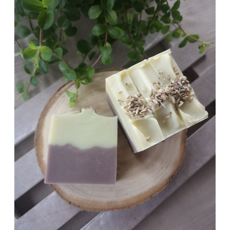 Relax and unwind with this delicate scented Lavender bar, combined with an essential oil blend of calming and uplifting essential oils to balance the mood and sooth the skin naturally.