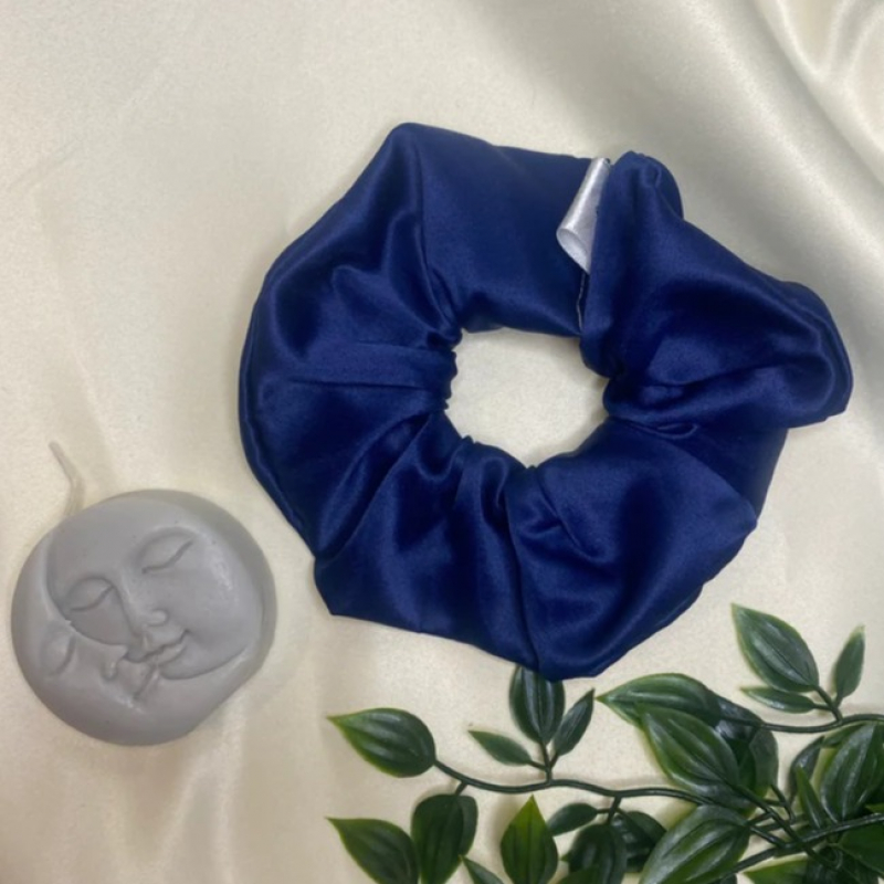 A deep midnight blue scrunchie made from only the best quality duchess silk fabric